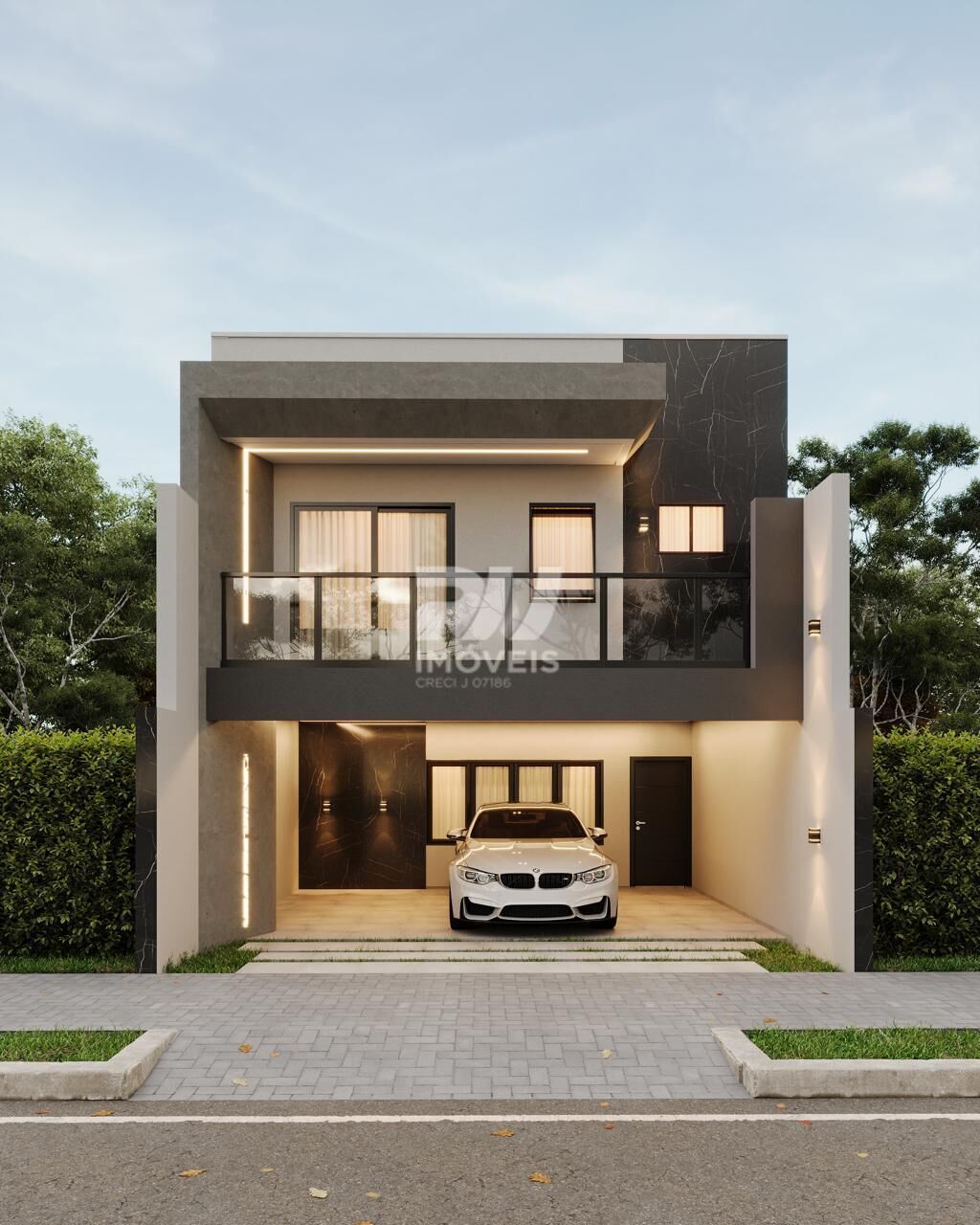 * Fachada moderna com detalhes arquitetônicos de alto padrão